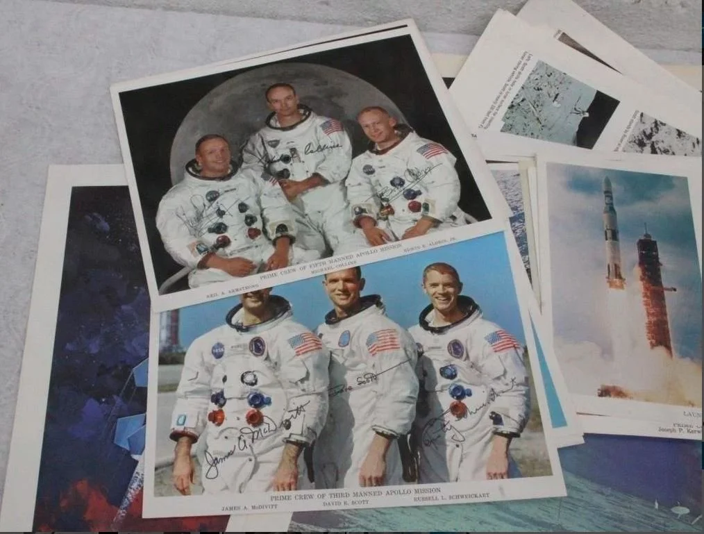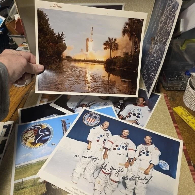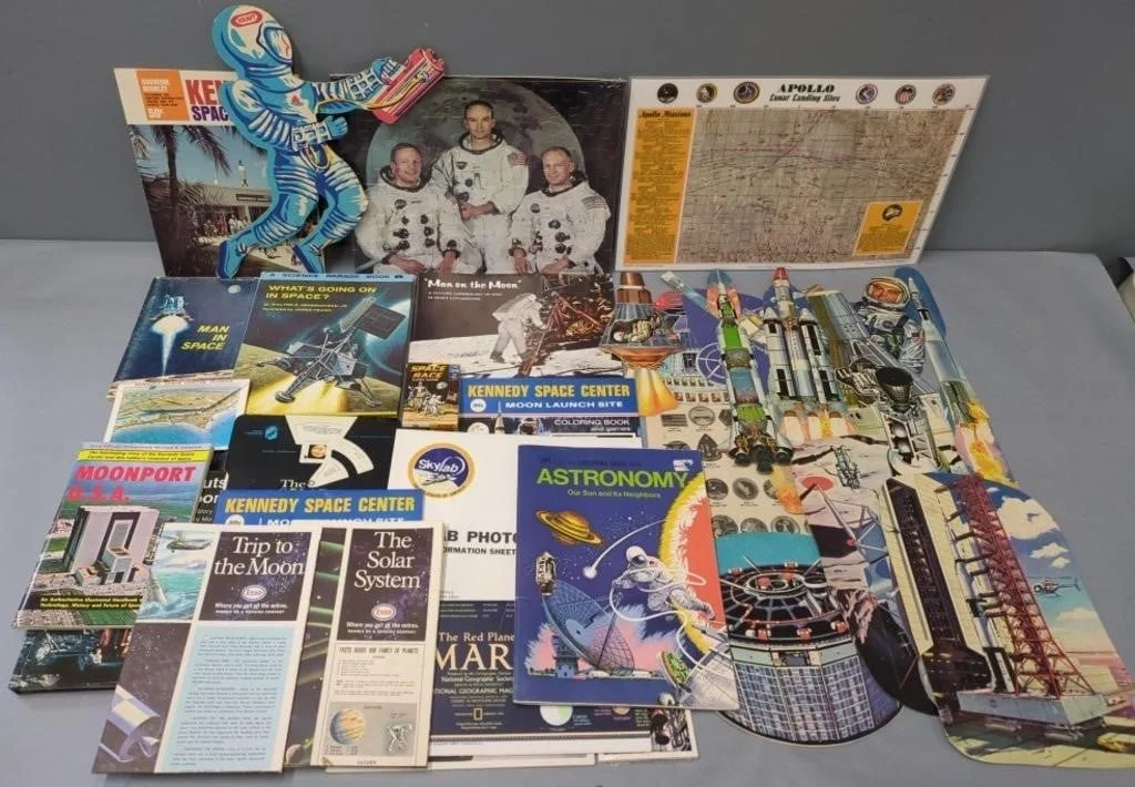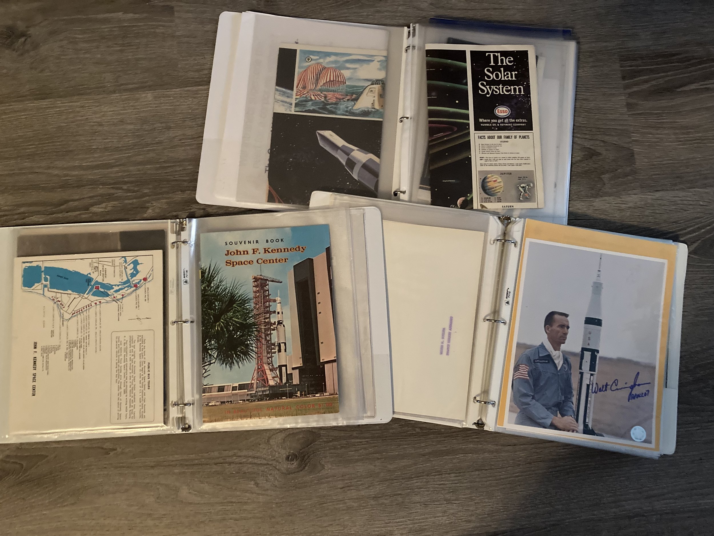 Ask me about my personal collection of vintage space memorabilia. I have eight binders going back to the early days of NASA. One is for Mercury/Gemini, one for Apollo/Skylab, one for my own era (Shuttle/ISS), and the rest are organized by topics including maps, visitors, Mars, postcards/photos, and astronomy.