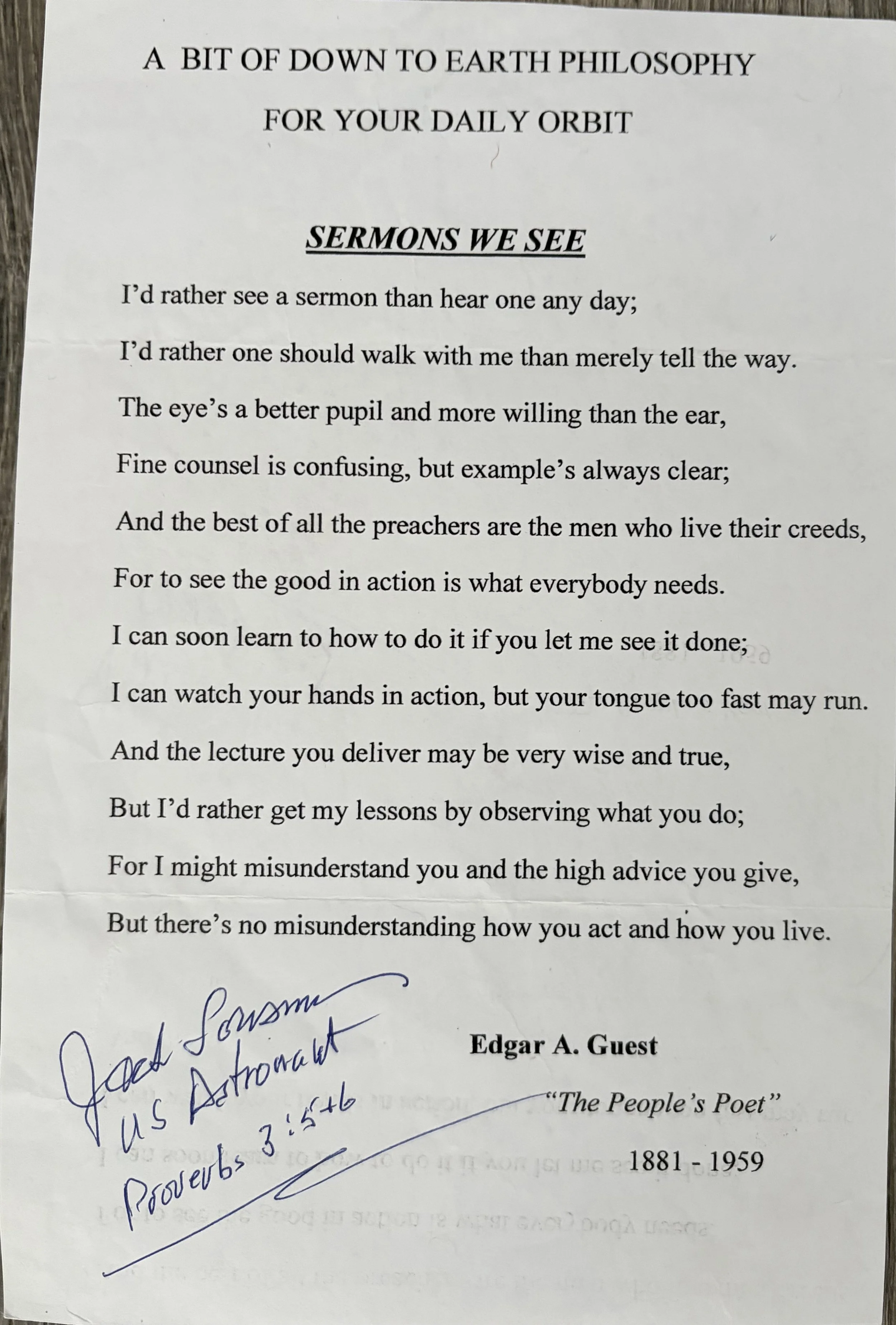 Sermon Signed by Jack Lousma, Skylab 2