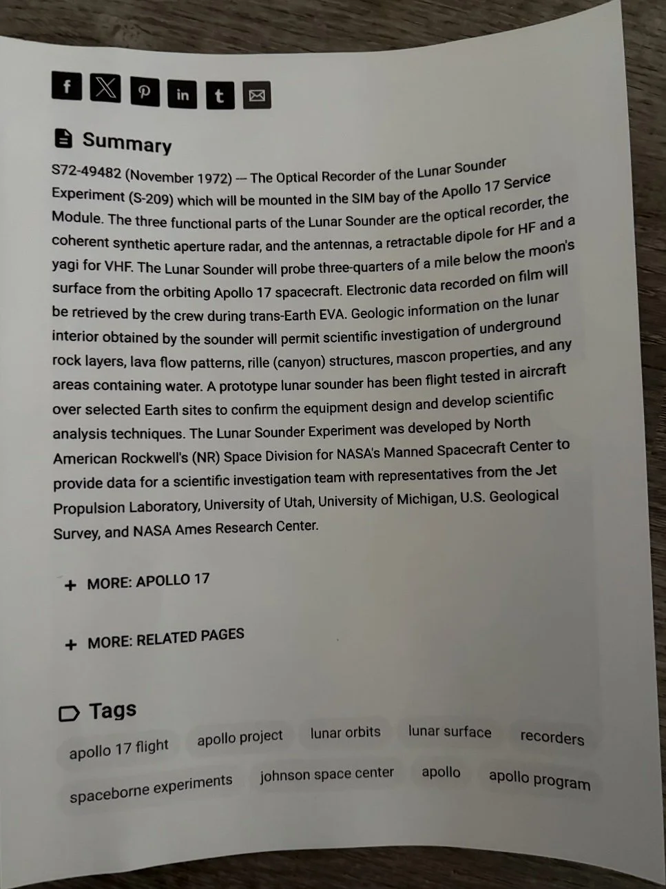 Lunar Sounder Experiment for Apollo 17 with Libbey Glasses