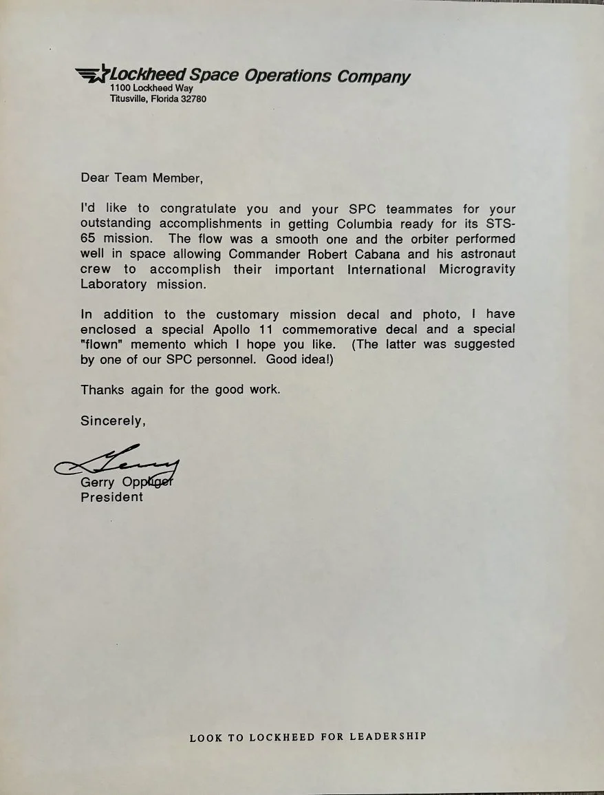 Lockheed Team Letter for STS-65